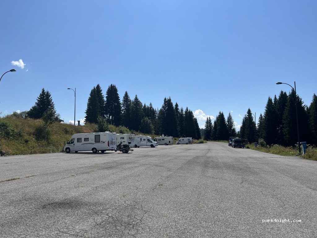 Très belle aire bien conçue et facile d accès. Départ/ retour ski aux pieds de piste et de fonds ainsi que des chemins de randonnée, de plus il y a la possibilité d acheter des bouteilles de gaz. La vue est vraiment superbe, top ! Le léger bemol victime du succès il y a plus de camping car que de prise électrique, mais bon on s arrange.