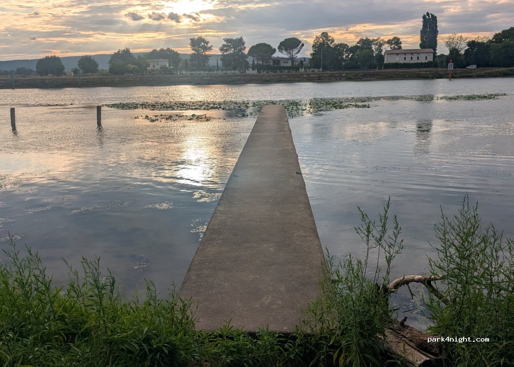 Camping Aux Rives Du Soleil, vraiment superbe au calme, vous avez le choix pour les emplacements près de l’eau ou bien sous les arbres dans l’ombre, sanitaires impeccables ils sont neufs, 2 piscines très bon restaurant accueil très sympa, nous y étions le 4 Juin en Camping-car 2 personnes et un chien avec électricité et carte Acsi 20€