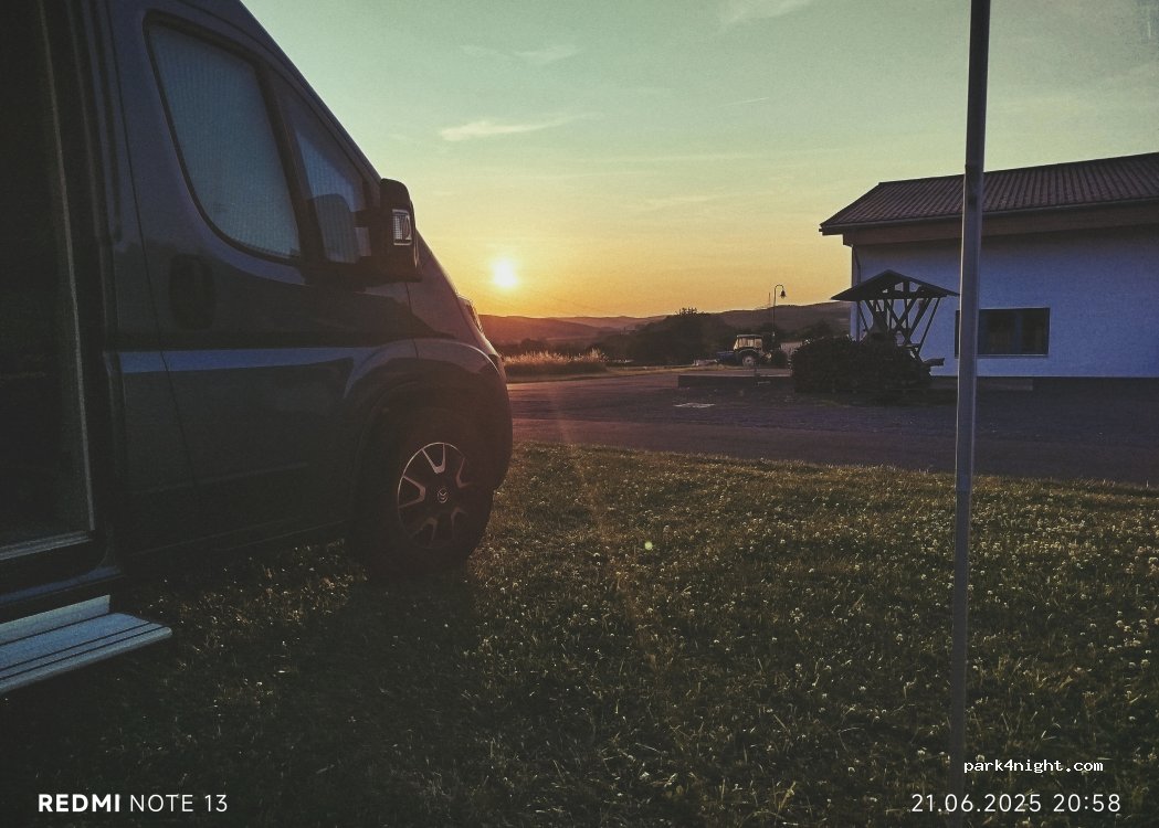 Amazing stellplatz! 5 stars! Parking and disposal of grey water is free of charge, water and electricity for a small amount of €. Beautiful view over corn fields and mountains. Quiet during night, we slept like babies. Please remember to leave a contribution in the moneybox.