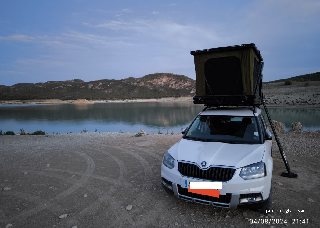 PK de acampada libre junto al pantano, con muy buenas vistas, fácil acceso desde la carretera, está bastante nivelado. No sentimos ningún miedo al pernoctar.