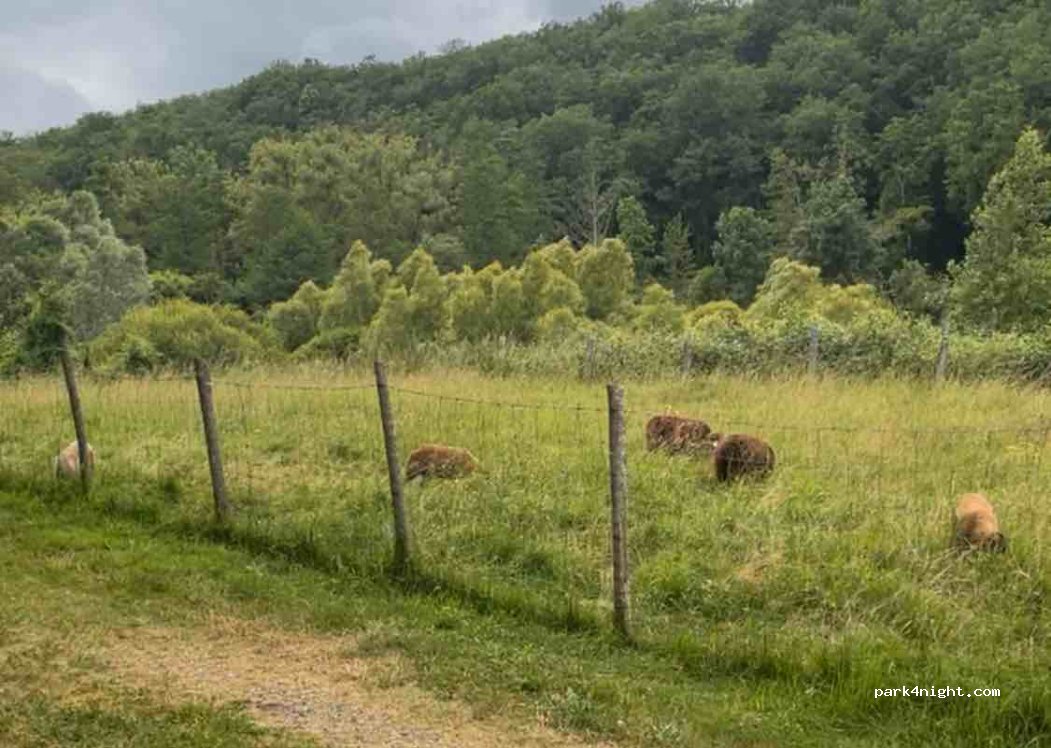 Passez une bonne nuit et une bonne journée à cette endroit à côté des boucs , une poubelle est à disposition, l air de jeux et de l autre côté de la route , merci à la commune