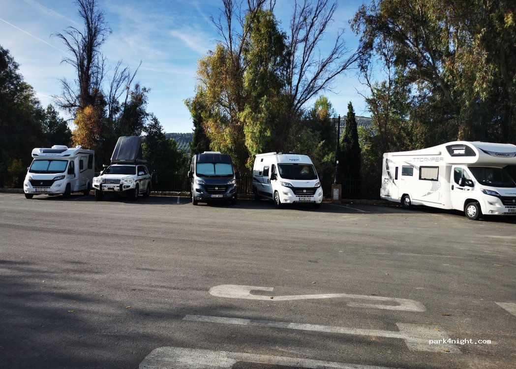Amplio aparcamiento cercano a centro de Iznajar , hemos pernoctado una noche muy tranquila , hay que tener en cuenta que hay toque de queda a las 23 h , por lo que es posible que ayude a esta tranquilidad , no hay servicios de desagüe pero sí una fuente de agua