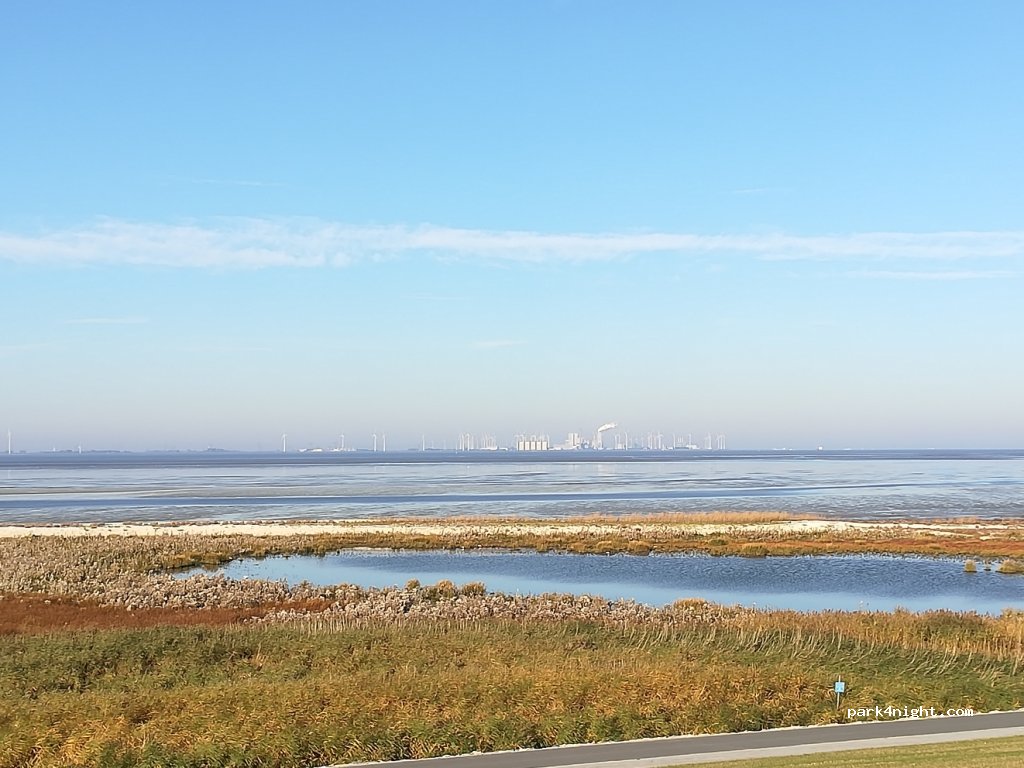 Parking, nuit au calme, sans service, belle balade sur la longue digue avec vue de l'Hollande et faire du vélo.