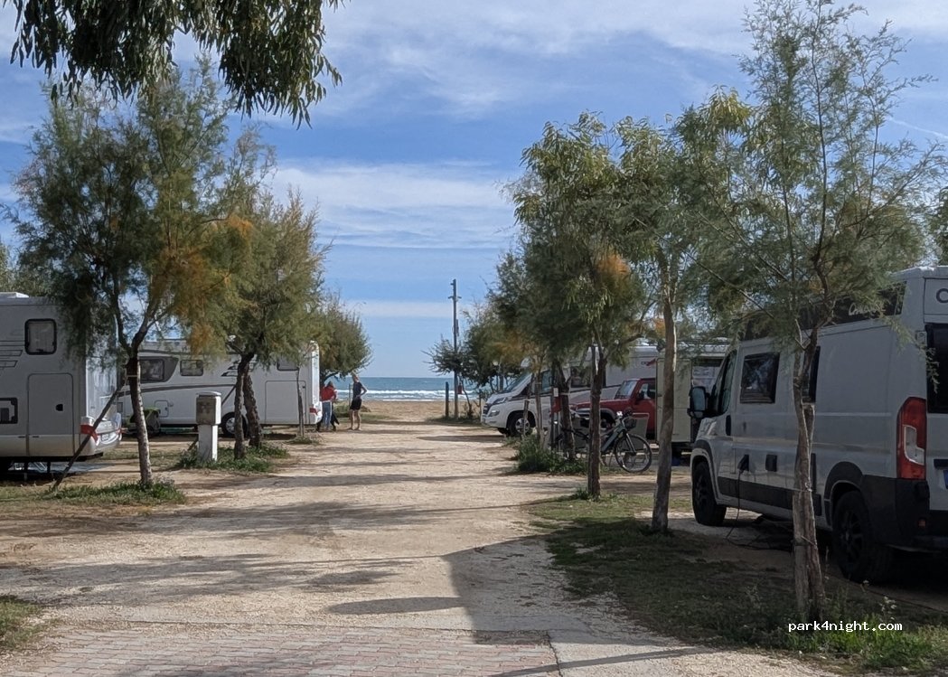 Camping Adriatico, very nice: beachfront for motorhomes. 2.5 km from the center of Vieste along the beach. All services are included with electricity.