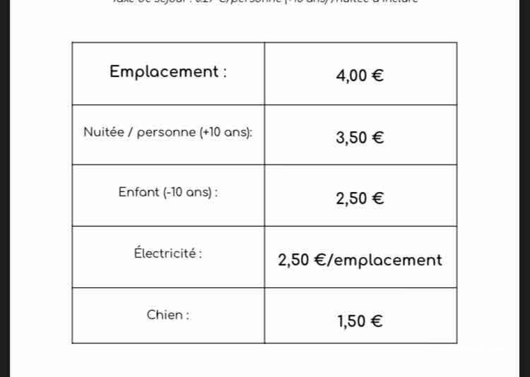Propriétaire sympathique et serviable. 11,50€ en tout pour 2 personnes avec un van sans électricité. Au milieu du centre équestre et ombragé. Sanitaires à disposition, au top !