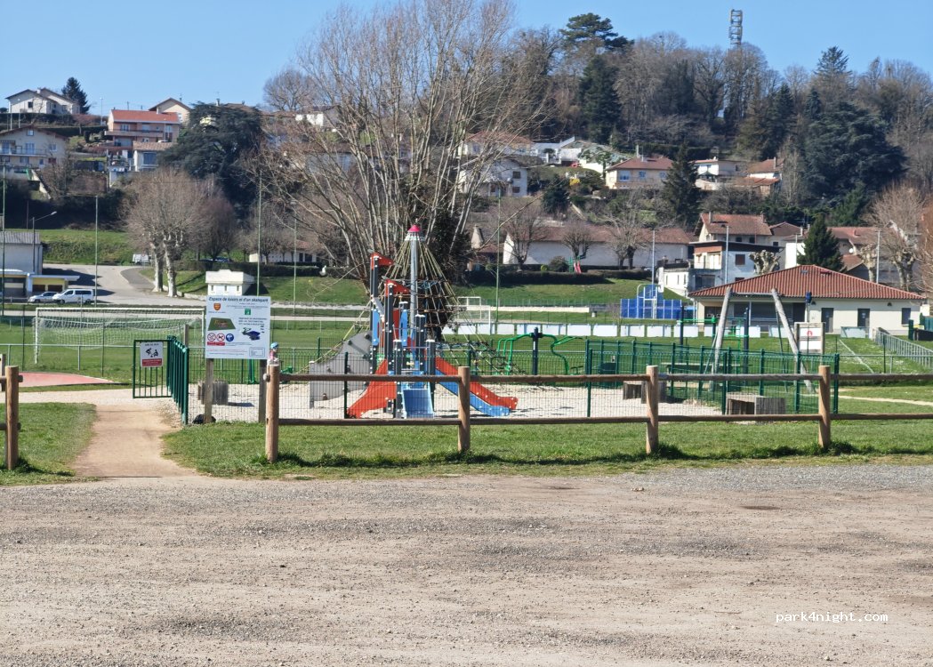 grand parking en gravillon au calme pour une nuit nickel à côté d une aire de jeux top pour les enfants et promener les chiens