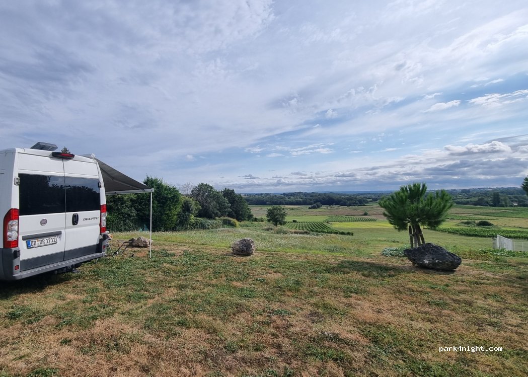 So ein schöner Ort! Wir wurden trotz spontaner Anreise herzlich von Delphine empfangen. Stéphane und Ophélie haben sich sogar die Zeit genommen, uns das Weingut zu zeigen und wir durften die super leckeren Weine testen. Der Ausblick vom Stellplatz ist einfach nur traumhaft und wir konnten den Abend in totaler Ruhe genießen! Wir würden auf jeden Fall wiederkommen.