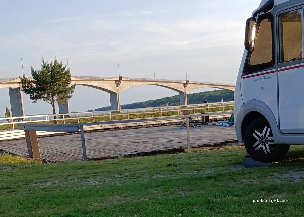 Bon emplacement bord de l'eau. Vue sur le pont un peu bruyant pas mal de passages. Accueil au resto pas souriant mais fait le job. Tarif 275 couronnes avec électricité. WC extérieur pas top (week-end ?). Sanitaires au camping du haut 5 couronnes. Il faut avoir envie de traverser la route. Toute fois reste moins cher que le parking de la station service plus haut (300C).