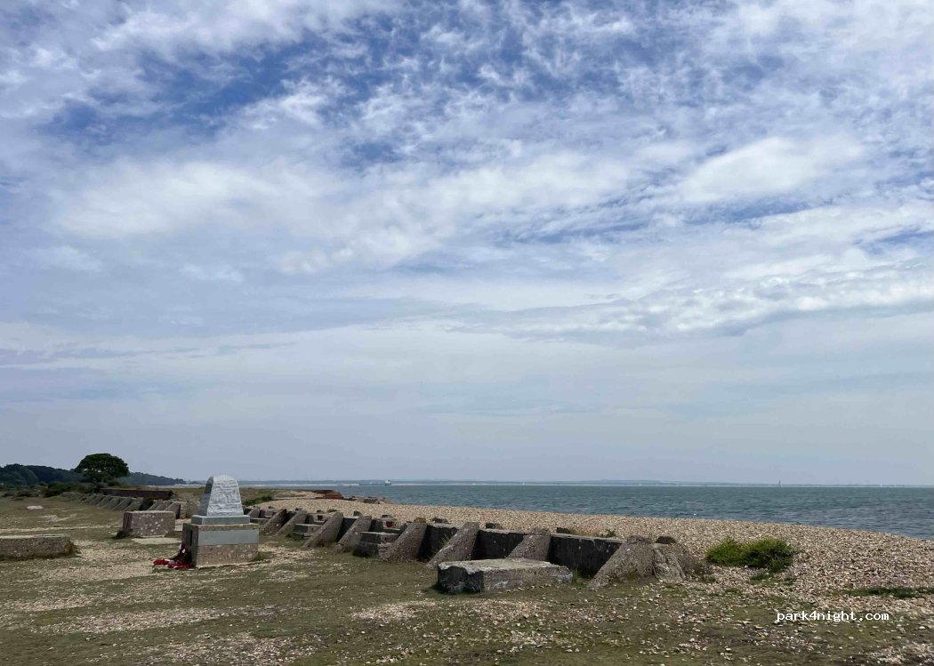 This is an area under development as Lepe Country Park for Hampshire County Council. It is fabulous parking by the shoreside but it closes at 10pm and overnight parking is not allowed. Outside the barrier there is a small area designated as coach parking and with a notice saying it is about to have works done that will make it for coaches only. Blue disabled badge holders can park for free.