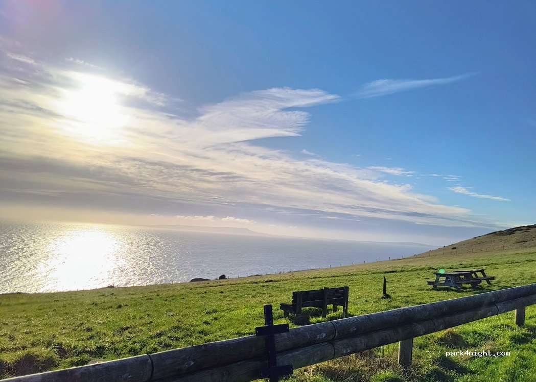 Eine wunderschöne Aussicht, genug Platz auf für Wohnmobile bis 8 Meter und öffentliche WC's. 30 Pfund für den ganzen Tag sind für England und diese Aussicht normal.