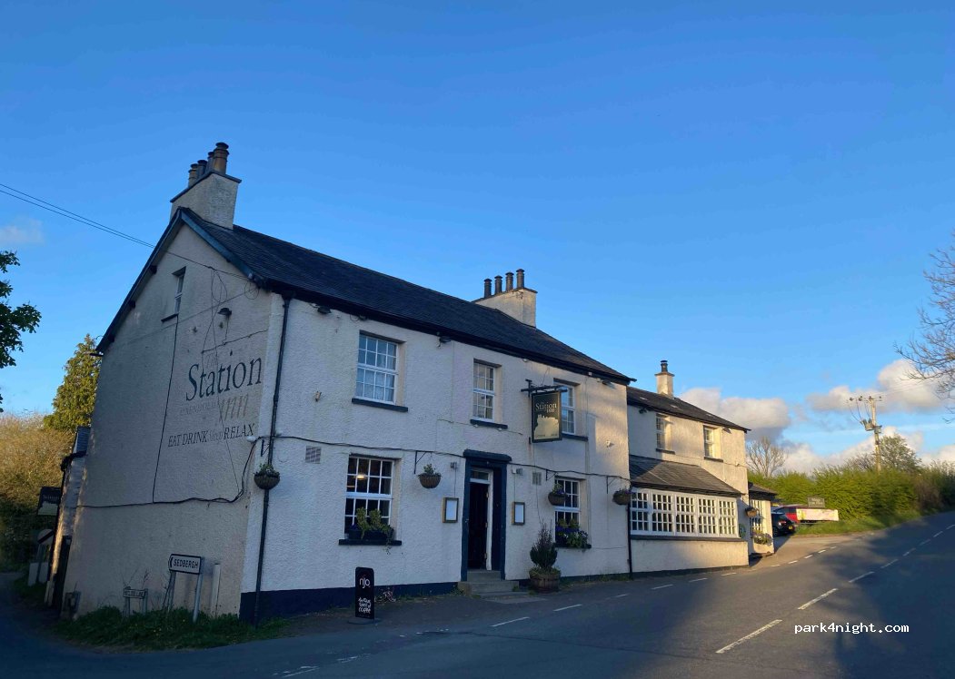 El estacionamiento del pub Station Inn. Llame primero para verificar que tengan espacio. Tienes que comer y beber en el pub, es de buena educación hacerlo.