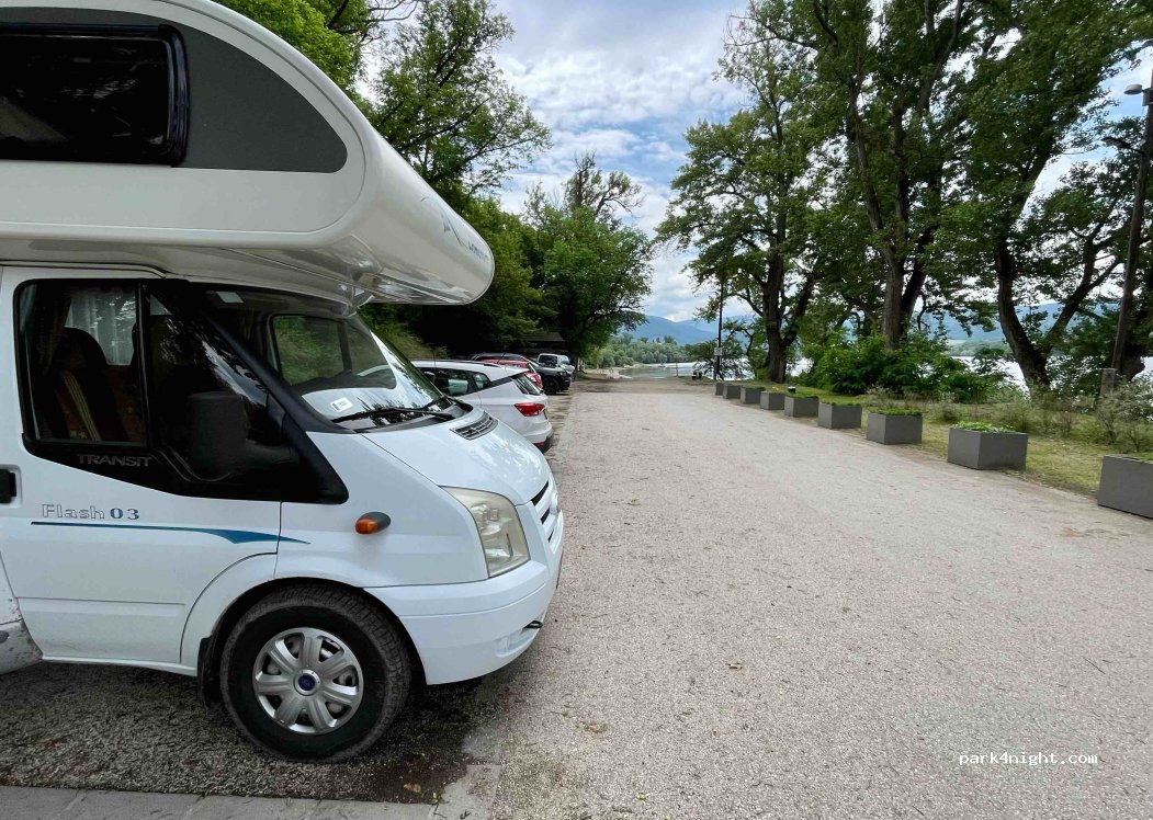 Vue sur le Danube. parking plat. mais bruyant. plage à côté avec du passage jusque tard.
