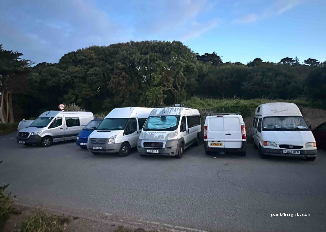 stopped over on a Saturday night in July, 5 other Van's also there but enough room for us all. great spot and beach just over road, a little traffic noise early on but very quiet from about 8pm....take a rod and have fresh mackerel on a summer's evening