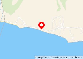 Between the road and the beach. Very nice corner with picnic area table bench under the pines facing the sea.