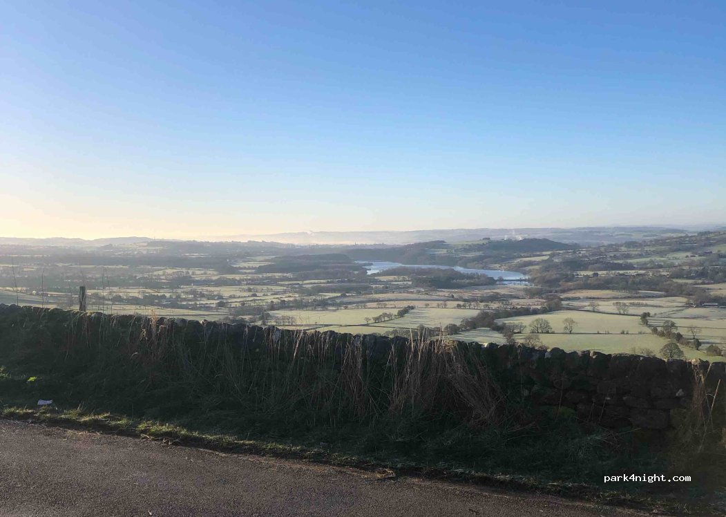 brilliant stop over but drive further up the hill to the single house and plenty of parking near the top of a dead end. from Saturday 8pm to Sunday 7am I heard 2 vehicles. plenty of vans here all friendly. amazing views over the valley. 10 miles to thors cave. great night's sleep. great location.