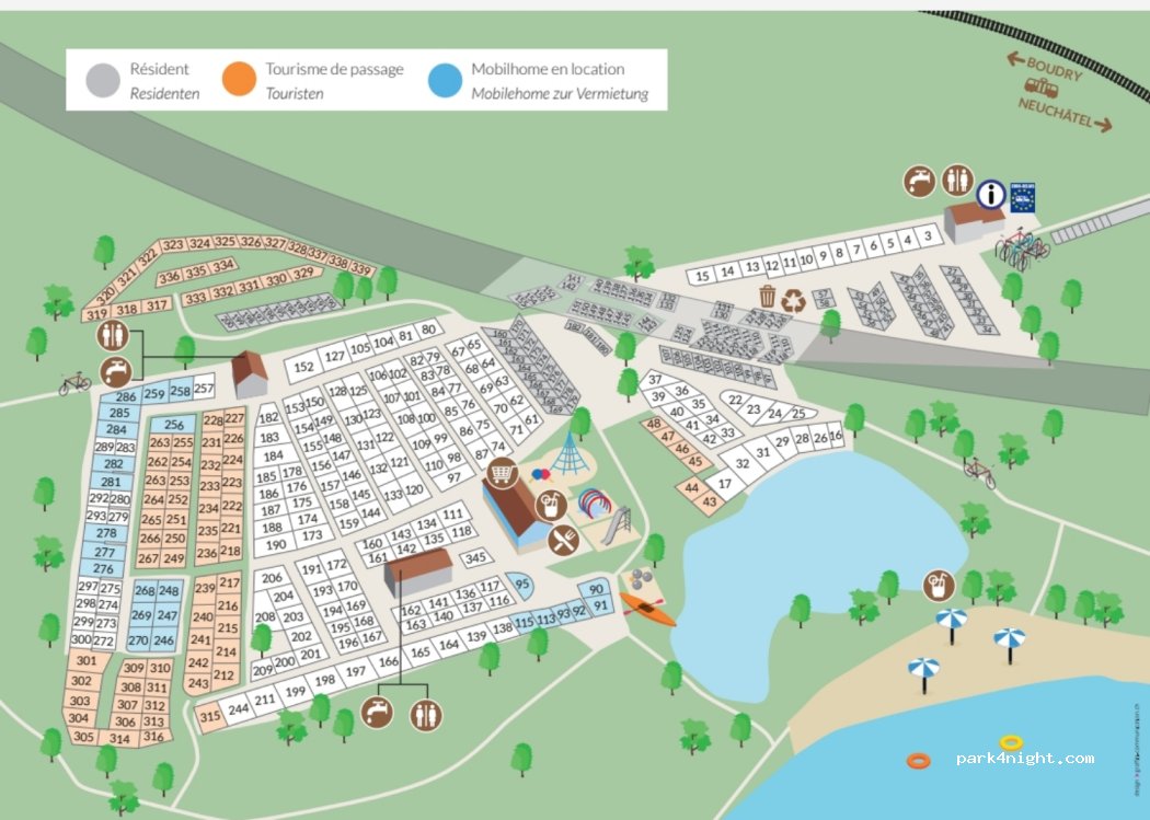 Camping bien situé, très proche du lac, a 15 minutes environ de Neuchâtel en vélo (electrique). La route passe juste à côté. Sanitaires bien équipés. 46€ la nuit pour 2 en camping-car.