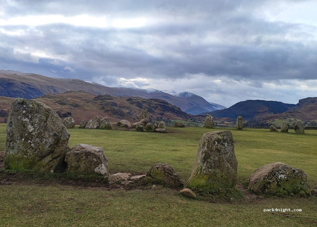 Beautiful spot out the way not far from Keswick about a 4 mile walk to town . Neolithic stone circles which you can go up to and touch and climb on . No facility’s but I’m spending the night here