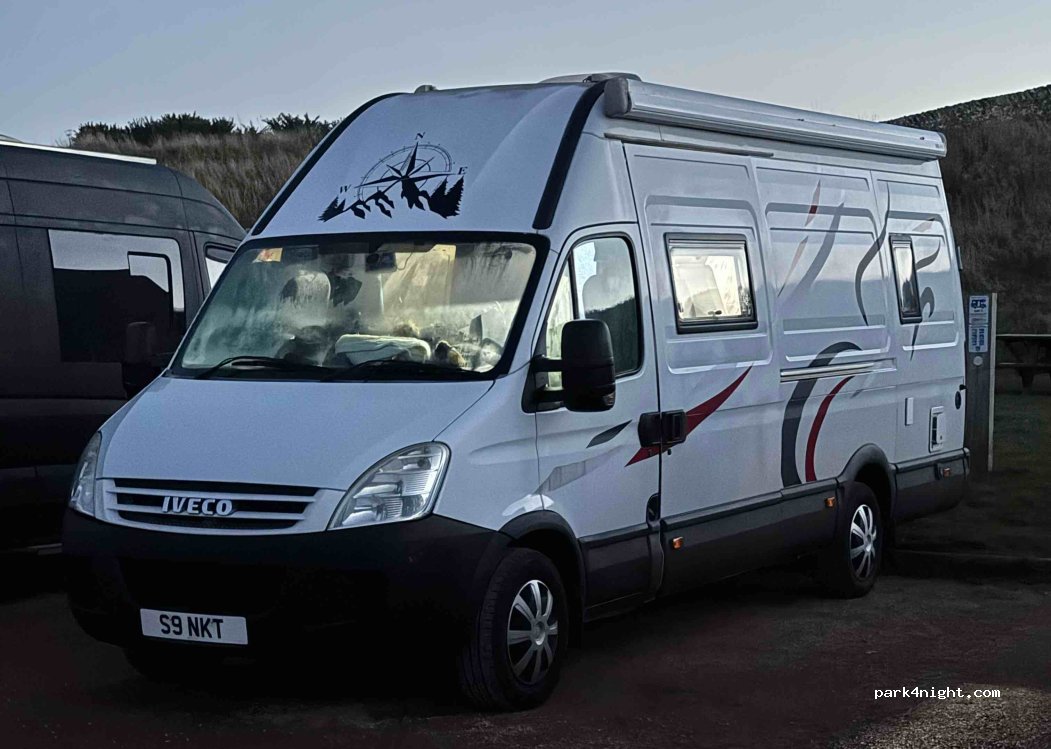 Lovely location and plenty of space however tricky to find an allocated campervan bay and gets extremely busy with dog walkers etc due to popular footpath and toastie shack. We spent a peaceful (windy) night here but woke up to a lot of cars parked all around us. It was great for access to local towns so if you can find a space I would highly recommend.