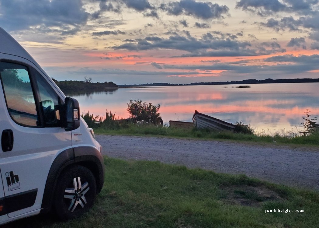 Parking au bord du lac Lough Owel, pas de service. Beaucoup de pêcheurs avec remorques et bateaux, spot de mise à l'eau, mais de la place.