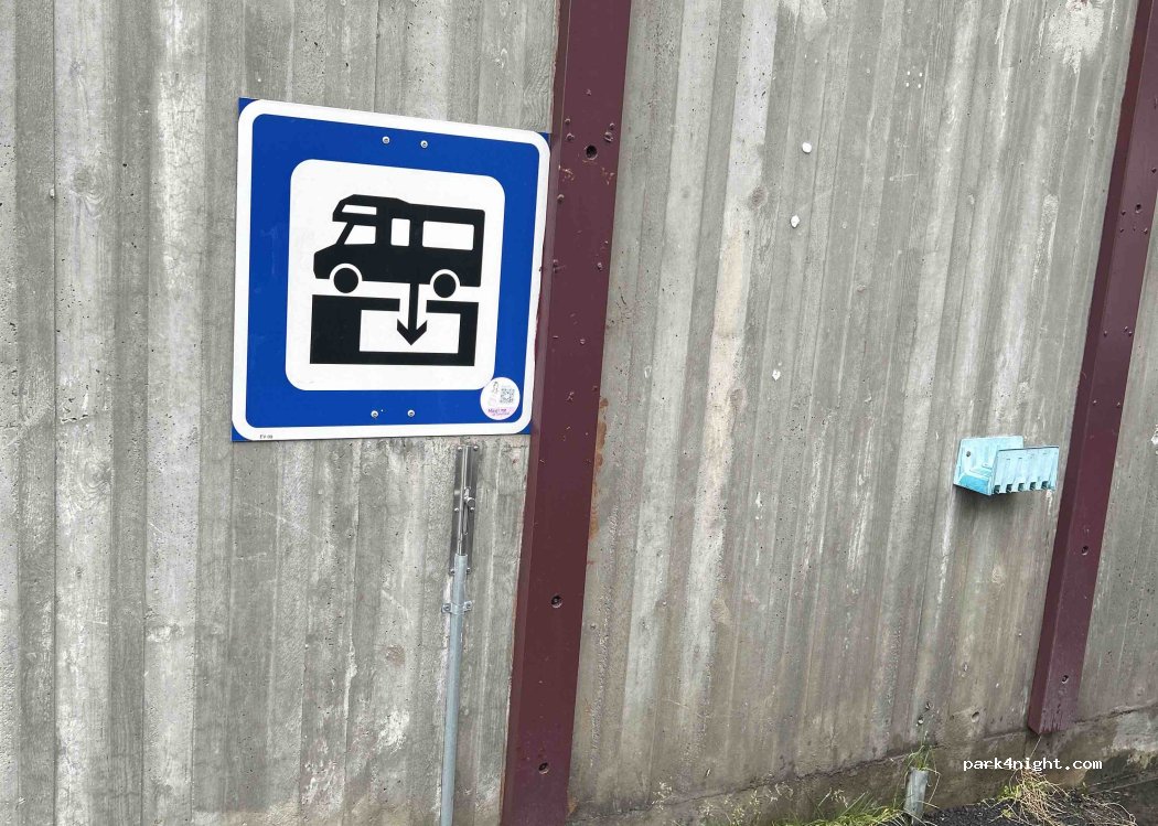 Il s’agit juste de l’aire de vidange. Il est interdit d’y camper. Le camping est 200m plus loin mais payant (450NOK)