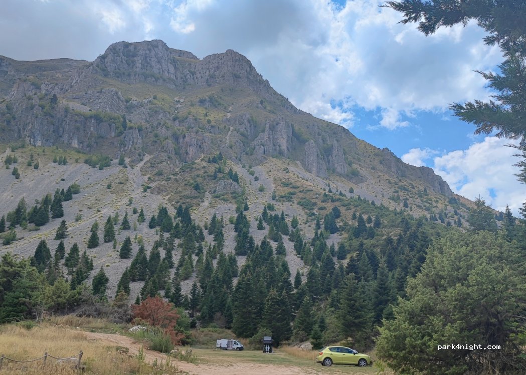 Wonderful stay at Pola & Babis's place!! It's more a wild spot than a carpark. You stand just below the incredible Strongoula Peak (don't miss this hike, a bit demanding but you will be rewarded all the way up and at the top!). there are also beautiful waterfalls just nearby, to get refreshed... they give you access to toilets, showers, swimming pool, drinking water... and typical Greek food !