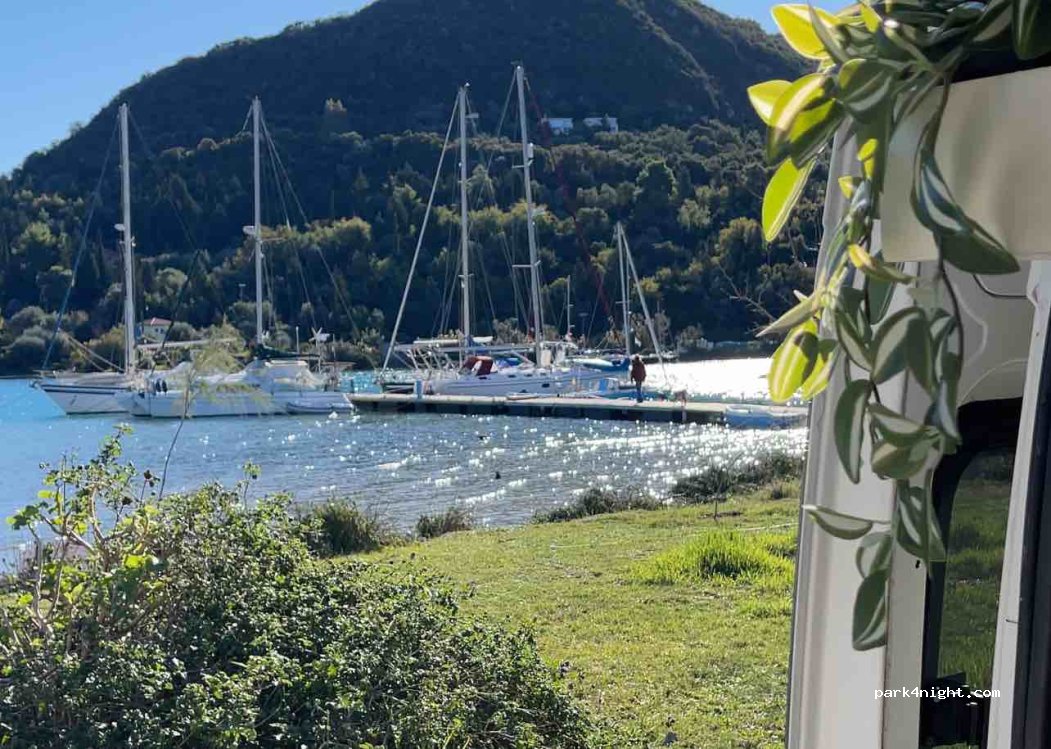 Super plek om Nidri te bezoeken en zeker het restaurant Mamma Mia! Wij verbleven hier 2 nachten. Rustig en veilig. We lieten de camper ook staan voor een boottocht.