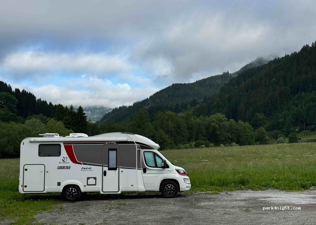 Petit parking gratuit idéal pour passer la nuit pas trop loin du Lac Vert (Grüner See), avec une belle vue sur les montagnes et un petit magasin SPAR à proximité. Proche de la route, mais reste calme malgré tout.
