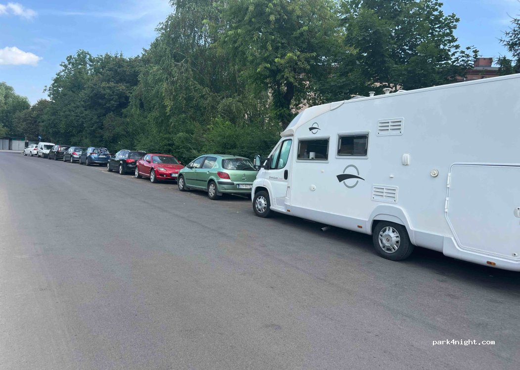 Parcheggio lungo la strada, attaccato però alla ciclabile!! Anche con la strada vicina rimane molto tranquillo!parcheggio molto “selvaggio” ma per una ma per 24 ore a Cracovia va bene!