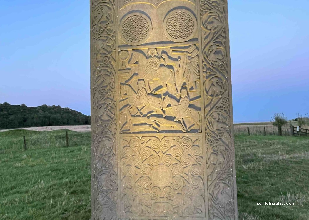Very peaceful sea view. Nice meals at the pub too. Lots of ancient history in the villages and an award winning beach. Toilets nearby and water tap. Mermaid of the North nearby.