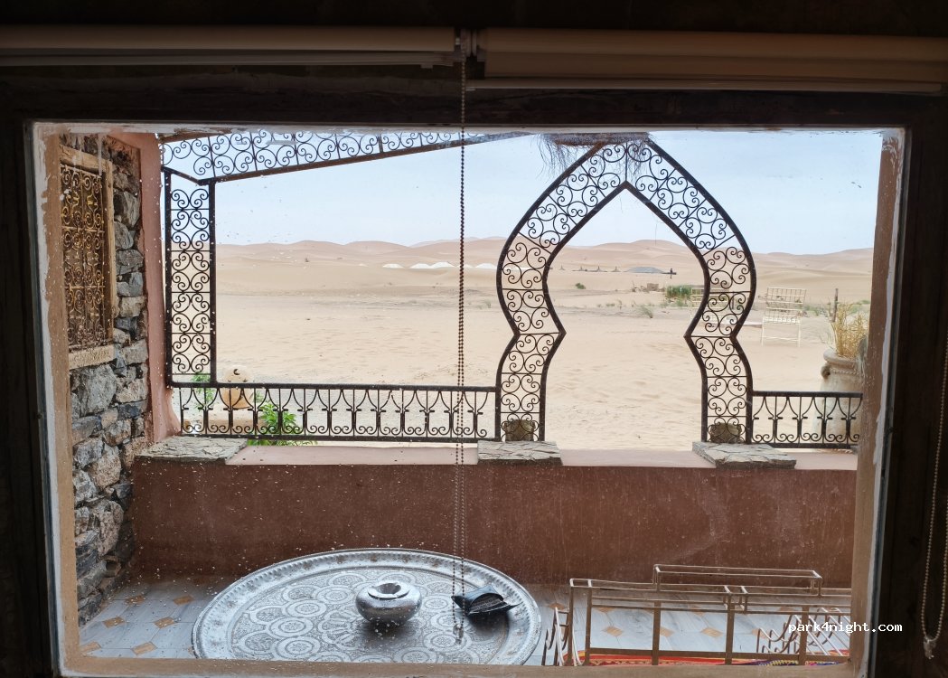 really nice place, just next to de dunes. there were only two of us, I think is not the most crowdy one (there were other campings super full). clean toilets and hot shower! only 50 dh two people and the car. Possibility to have buffet breakfast in the hotel for 50 dh per person, a lot of different choices but rather tasteless. I don't recommend it for the price.