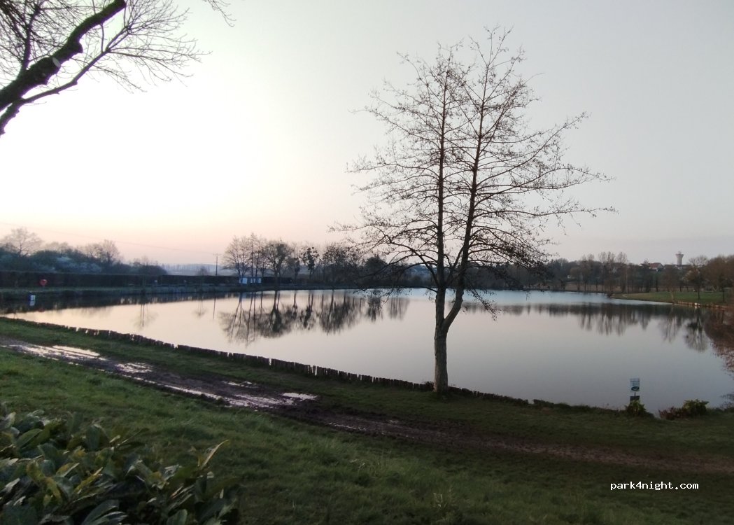 A great place within a days drive of Calais. 2 pretty fishing lakes. Toilets and even a shower. Bins. Flat hard standing though rather wet and dirty in damp October. Noise from road nearby but with ear plugs it was fine. One to remember and revisit.