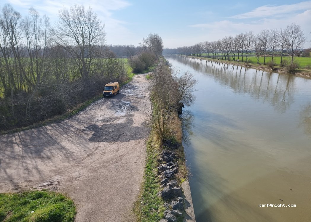 Příjemné, tiché místo, ideální pro nocování. Místní místo využívají pro zaparkování k procházkám podél kanálu. Pokud máte štěstí, je jedno volné místo hned u kanálu těsně před značkou se zákazem vjezdu a balvany, které zabraňují vjezdu.