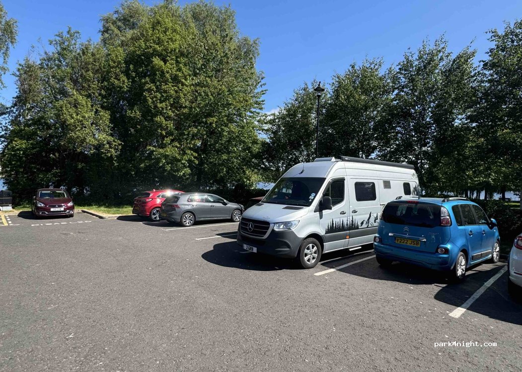 Car park is named as St Nithian's Way car park in Google maps. next to a huge residential area on one side (apartments) and lake on the other side. The car park next to it is filled with vehicles from locals, probably that is why they do not like moho to park. Enough space. For me as I usually confined to my camper. If you are planning to up awning or chairs, not for you.