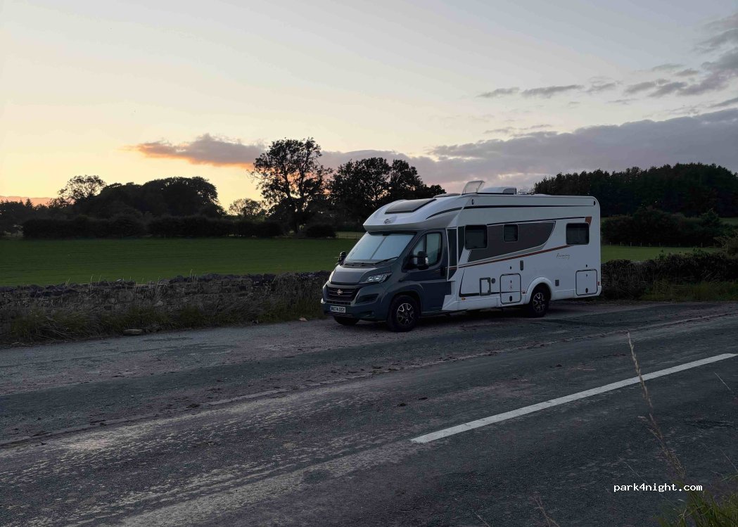 Large lay by by the side of the B6254. No facilities but nice rural surroundings.