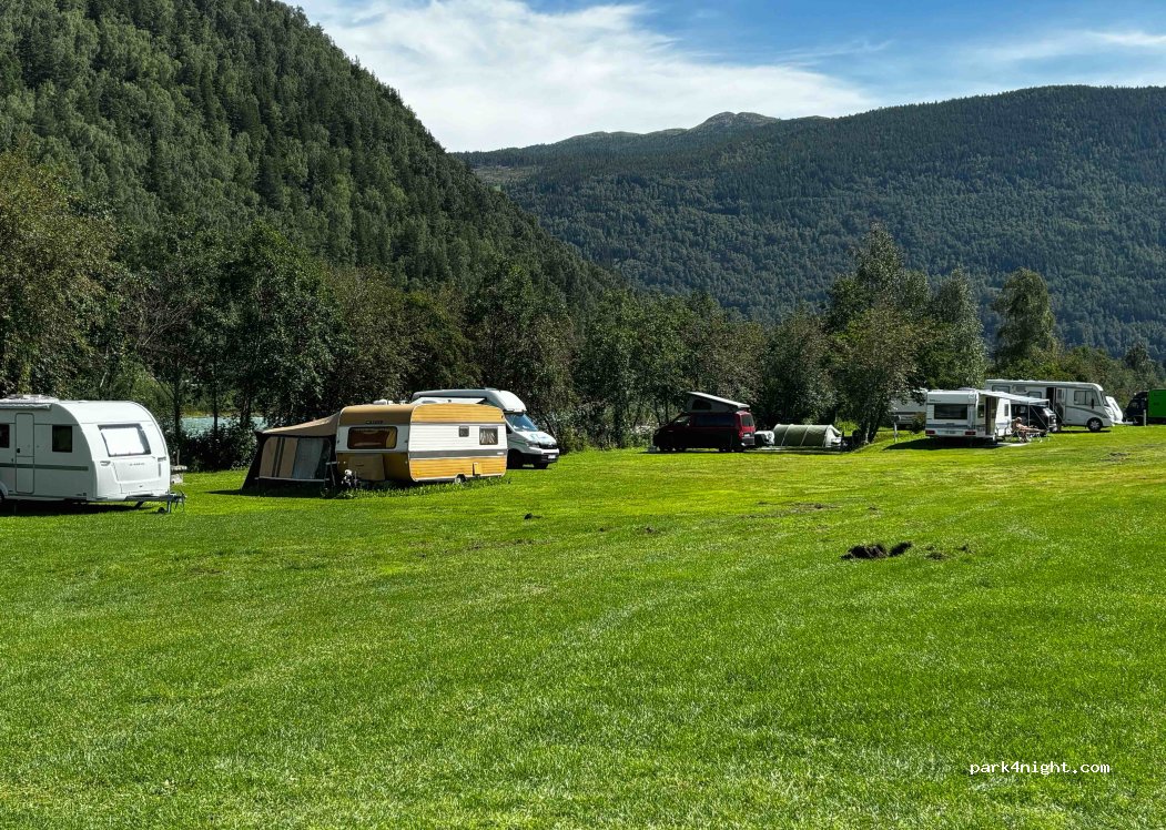 Der Platz ist okay, im Moment etwas sehr nass. Besitzer spricht etwas deutsch. Straße gegenüber hört man schon, störte uns aber nicht. Sanitäranlagen sind sauber tlw. neu mit alten Rohren. Duschen gegen 10 NOK.