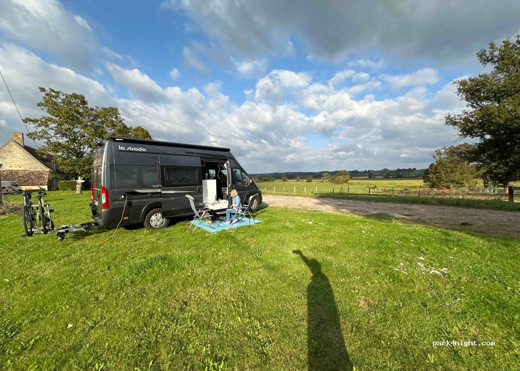 Heel vriendelijk en enthousiast onthaal van zowel de gastvrouw als de honden. Makkelijk te vinden met gps. Verse regioproducten in haar restaurant/winkel waar ook douchemogelijkheid aanwezig is. Sanitair was basis maar oké. Prachtig uitzicht over de weilanden van centraal Frankrijk. Drinkbaar water en elektriciteit (€ 2) aanwezig. Mogelijkheid tot bestellen van ontbijt. Zeker een aanrader.