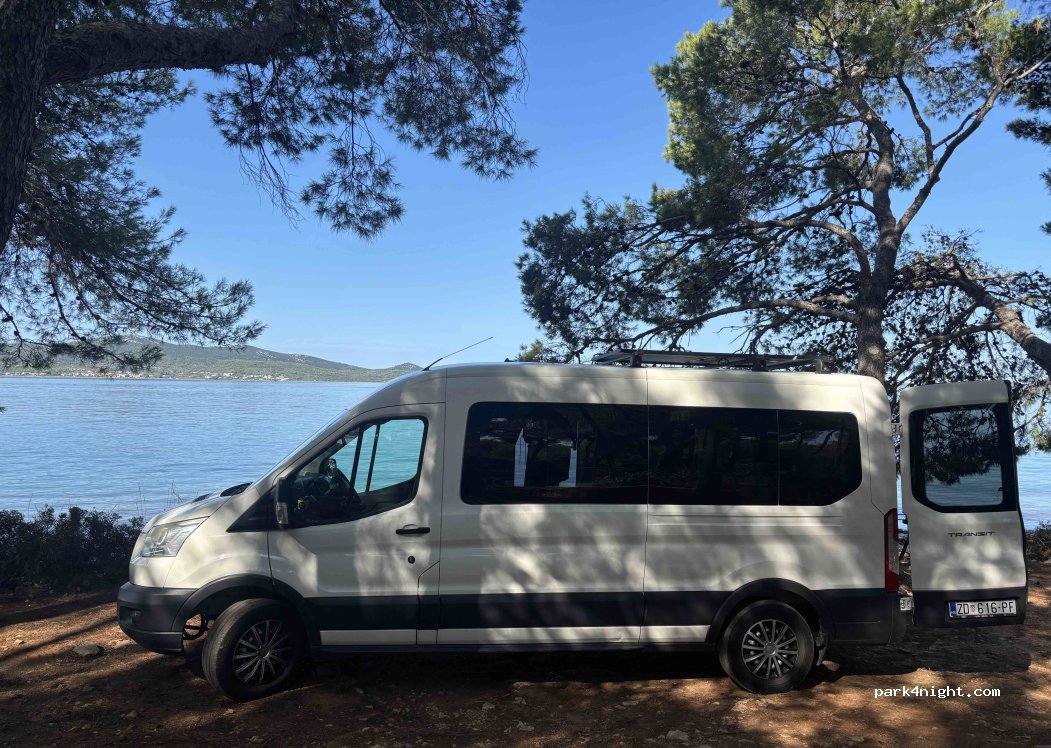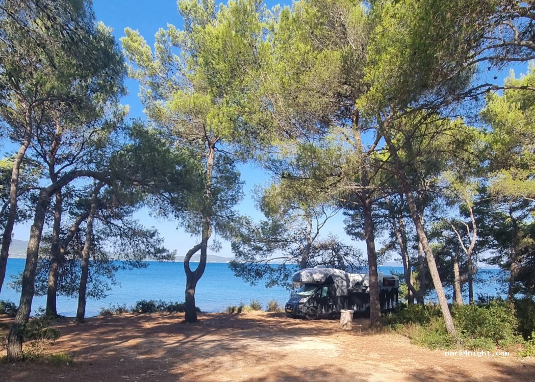 Schattiger unebener Platz aber nicht für Wohnmobile geeignet., sehr eng. Total voll Müll. Schrecklich. Den einen Stern gibt’s nur für den Strand einige Meter weiter, da kann man in Ruhe liegen, auch fkk möglich.