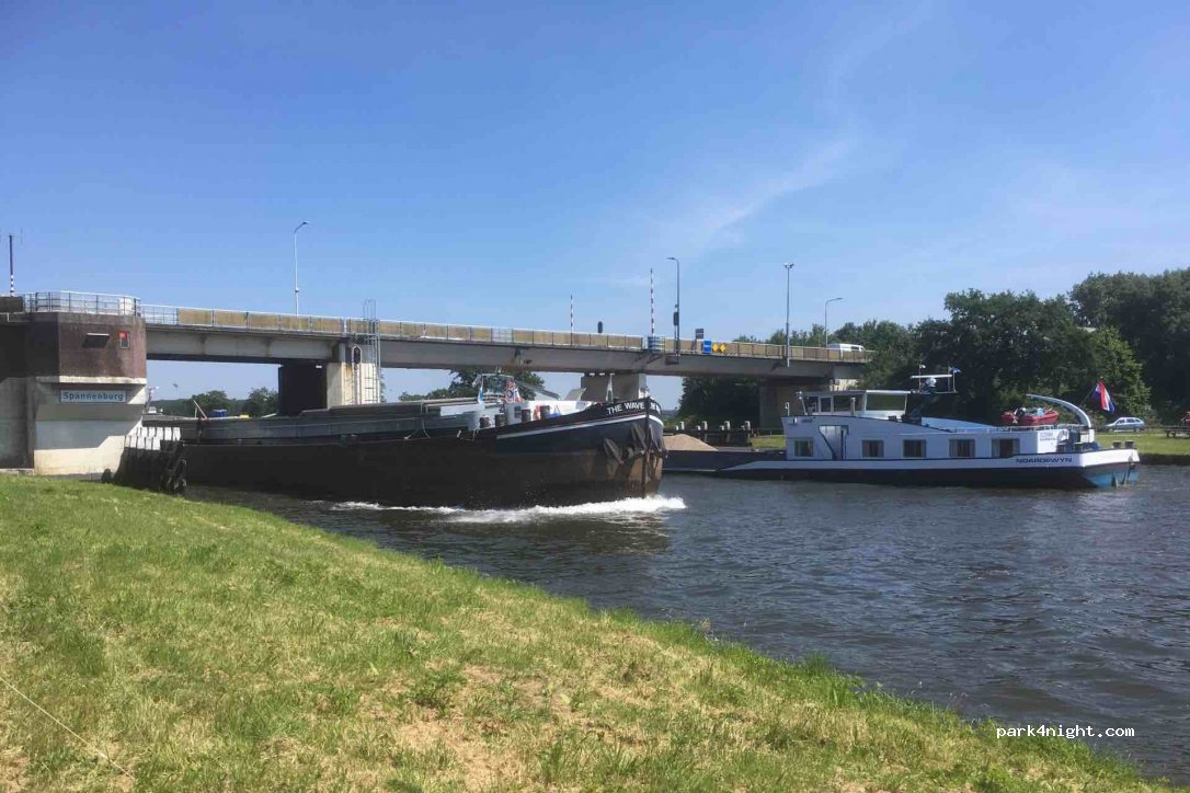 Mooie plek aan Prinses Margrietkanaal bij brug “Spannenburg”. Veel scheepvaart.