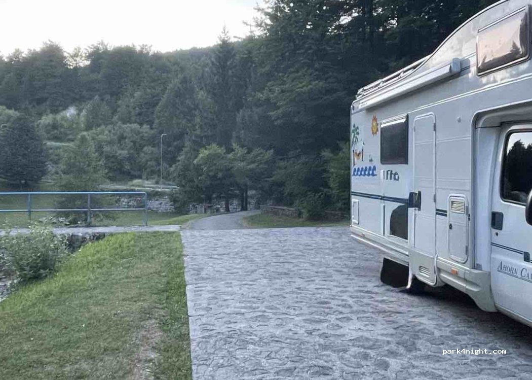Superbe endroit, près d’une rivière, il y a un point d’eau potable et même des toilettes publiques propres. Possibilité de se garer à 4 vans. Parfait pour dormir une nuit ou deux.