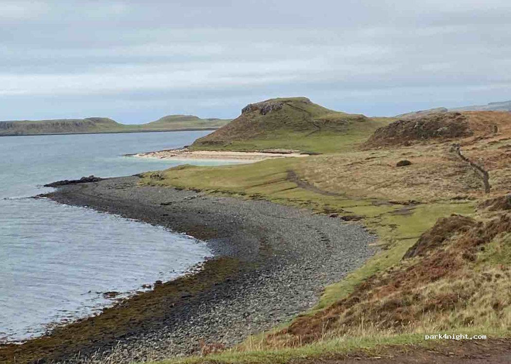 Endroit magnifique. La plage de sable blanc à 600 m est splendide et le coucher de soleil sur les Hébrides vaut le détour. Parking overnight mais personne. Du coup nuit tranquille.