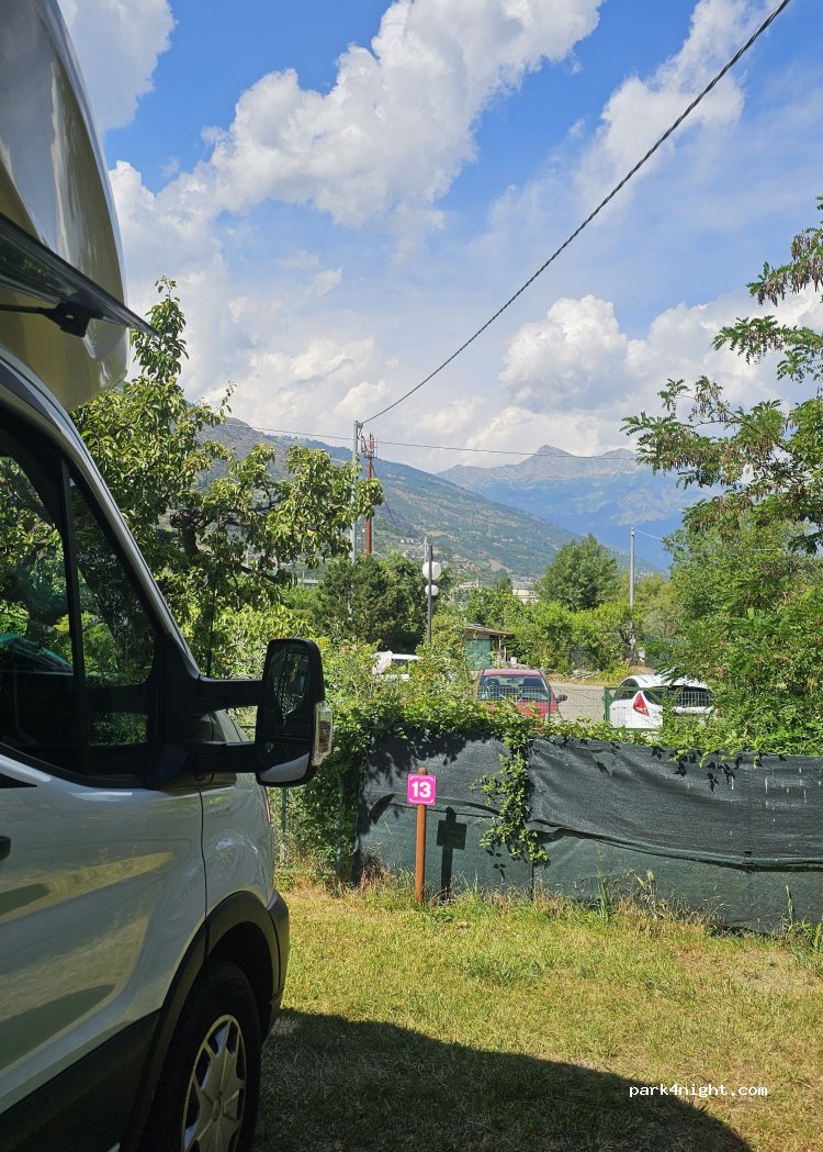 Petit camping sympa malgré la route et le torrent en bruit de fond, très bon accueil. Belle piste cyclable pour rejoindre Aoste a 5km et plus loin sur une vingtaine de kms. Pas mal de circulation automobile dans cette région