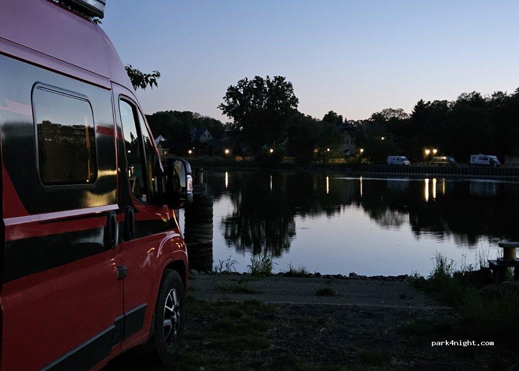 Be aware that the adress is in Germany. You should cross the river in order to find the right place. We went a little further along the way and found a nice place right by the river. Quite a lot of rubbish but otherwise nice and calm (probably people fishing on weekends)