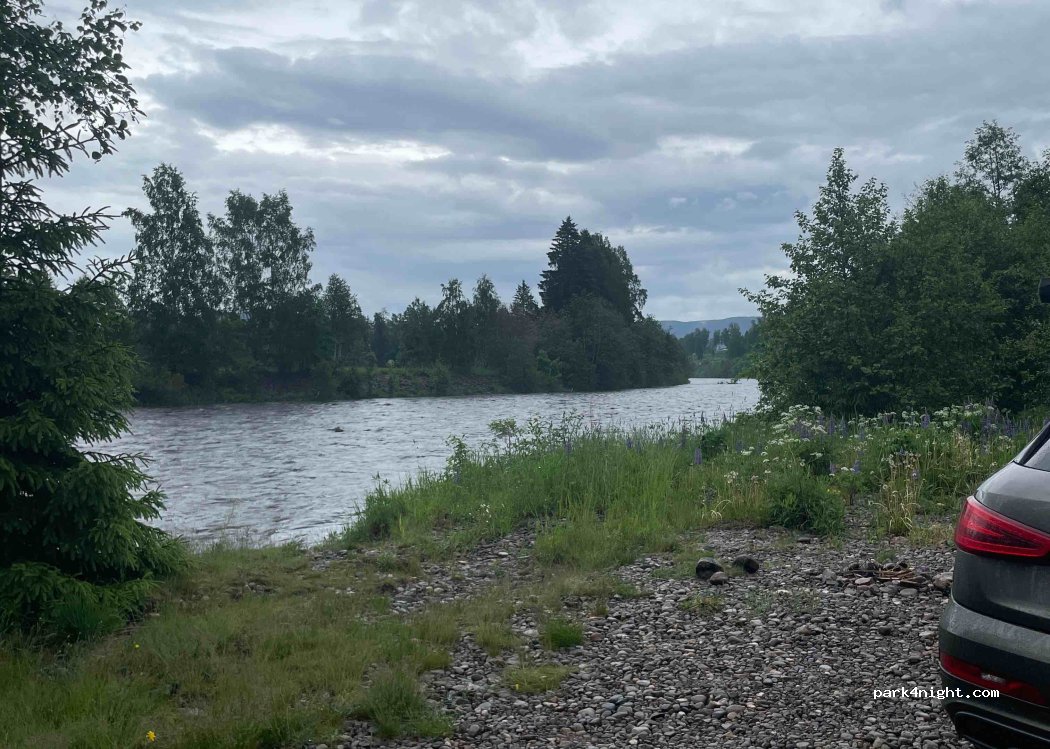 Auf jedenfall Bodenfreiheit beachten! Sonst sehr netter Parkplatz direkt am Fluss, es gibt eine Sitzbank. Platz ist hier für 2-3 Vans, je nachdem wie man sich arrangiert.