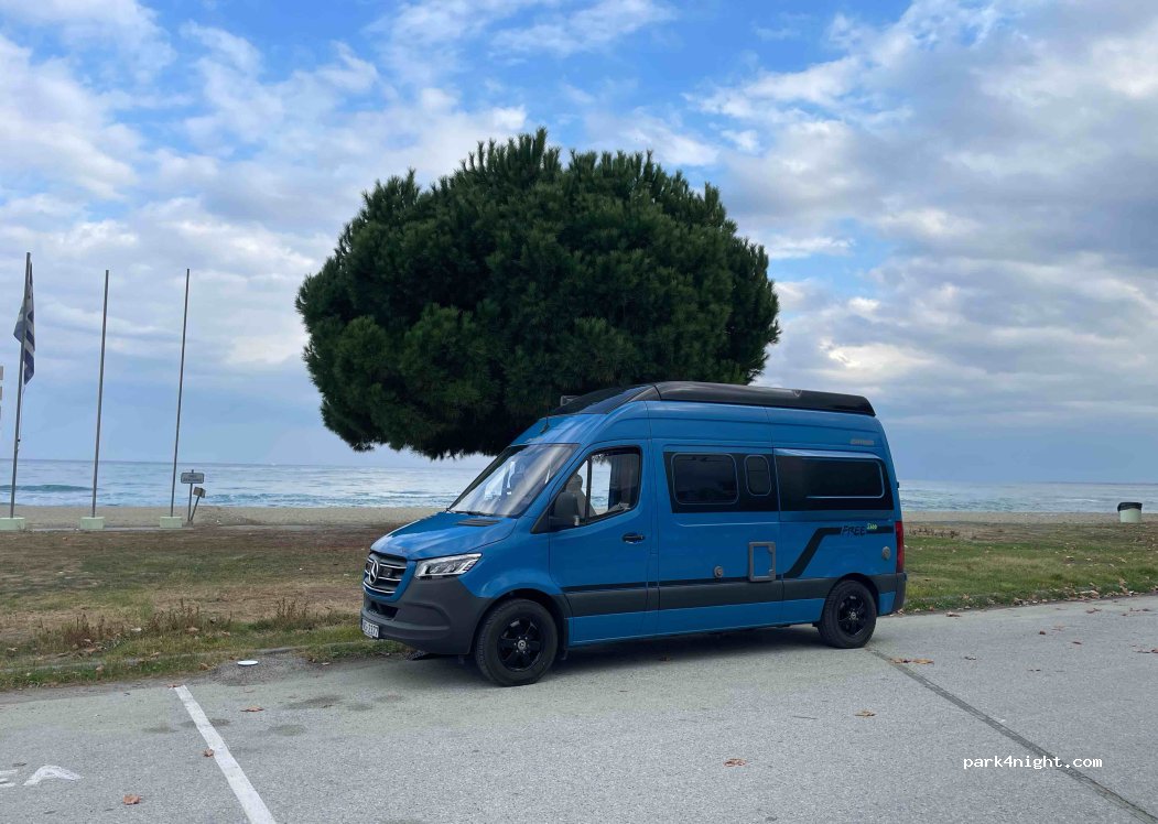 Το παρκινκ διπλα στην θαλασσα υπαρχει βρυση και ντους οι κατοικοι φιλοξενοι.Δεν υπαρχει πολυς κοσμος σημερα.Θα διανυκτευρεσουμε.
