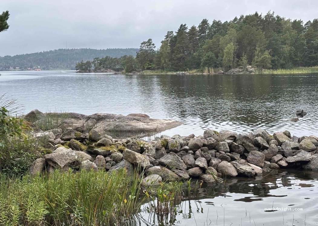 Parking for campers on gravel outside camping 150kr,you can use service at campsite,coins needed for shower 5kr,small ferry from north running apr- oct, 8-20(18),50kr