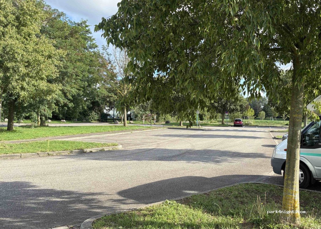 Parking à 1 minute à pied du plan d’eau où l'on peut se baigner (avec douches eau froide). Endroit très calme et sécurisé pour y passer la nuit. Quelques places à l’ombre sous les arbres. Pas très loin des commerces du centre ville de Reichstett et à 30min à vélo du centre ville historique de Strasbourg par la piste cyclable.