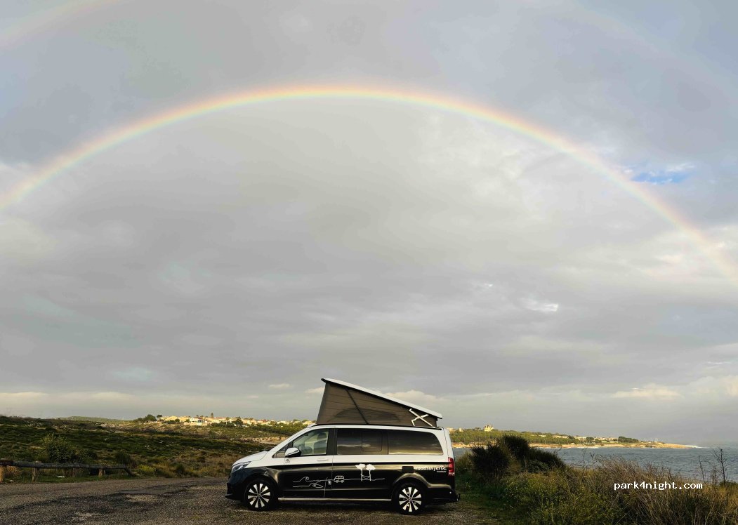 La barrera de 2m limita la entrada al Parking. Los vehículos pequeños gozan del privilegio de este enclave delante del mar. Tiene un bosque quemado detrás que lo hace aun más especial. Fuimos en 18 de mayo y estábamos solos en el sitio. Simplemente fantástico.