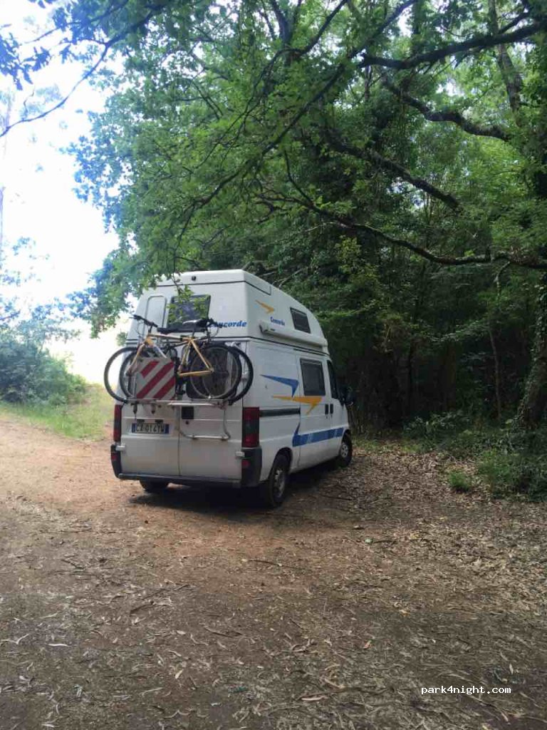 Parcheggio in natura vicino al lago dell’accesa. Possibilità di parcheggiare all’ombra (5/6 posti) oppure nel parcheggio sterrato, che però è a pieno sole tutto il giorno. Abbiamo pernottato 2 notti e ci è sembrato molto tranquillo, insieme a noi ci sono stati sempre altri camper e tende. Durante la notte c’è un po’ di movimento di macchine dovuto ai pescatori. L’unica pecca è l’assenza di segnale.