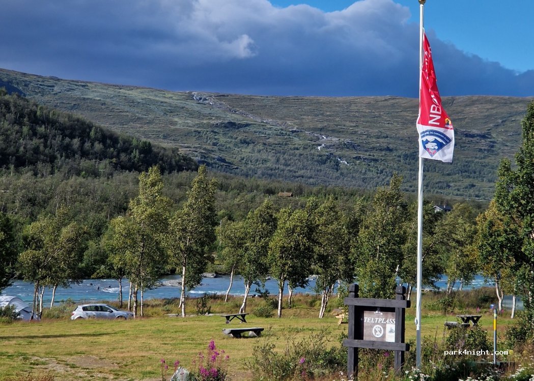 Toller CP. sehr schöne ruhige Lage an einem kleinen Wasserfall. Alles vorhanden. Guter Ausgangspunkt für Wanderungen. Ca. eine halbe Std. Fußweg zum Ausgangspunkt für die Wanderung Besseggen. Der Aufstieg belohnt sie mit einer traumhaften Aussicht. In den 3 Tagen die wir hier standen kam jeden Tag ein Rentier vorbei. 370 nok pro Nacht, 2 Personen 1 Womo mit Strom + V+E ohne Dusche.