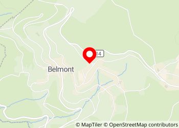 Absolut ruhiger geschotterter Platz oberhalb eines kleinen Sportplatzes, unterhalb der D414, mit schöner Aussicht in die Täler Richtung Süden und Westen, am Ortsrand von Belmont, für 5 - 10 Fahrzeuge, keinerlei Service, keine Verbotsschilder. Zufahrt über schmale asphaltierte Strasse, nur in einer Richtung von der D414 abbiegen